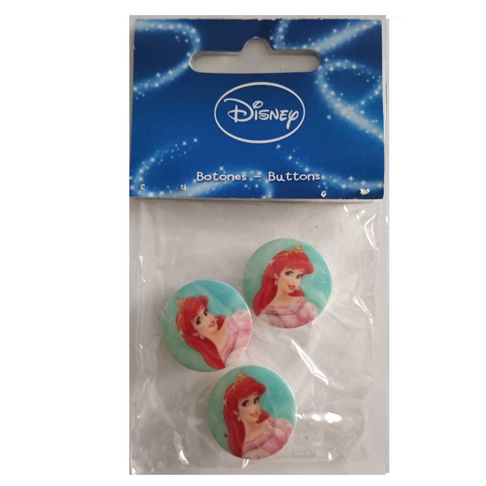 Disney – Princesas – Pack de 3 Botones Decorativos – (licencia oficial) – Ariel – La Sirenita – 2,1 x 2,1 cm. – Moda The Happy Patch