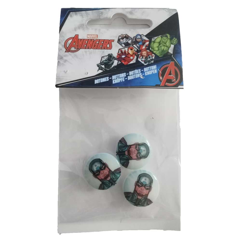 Marvel – Super Héroes – Pack de 3 Botones Decorativos – (licencia oficial) – The Avengers – Los Vengadores – Capitán América – 1,8 x 1,8 cm. – Moda The Happy Patch