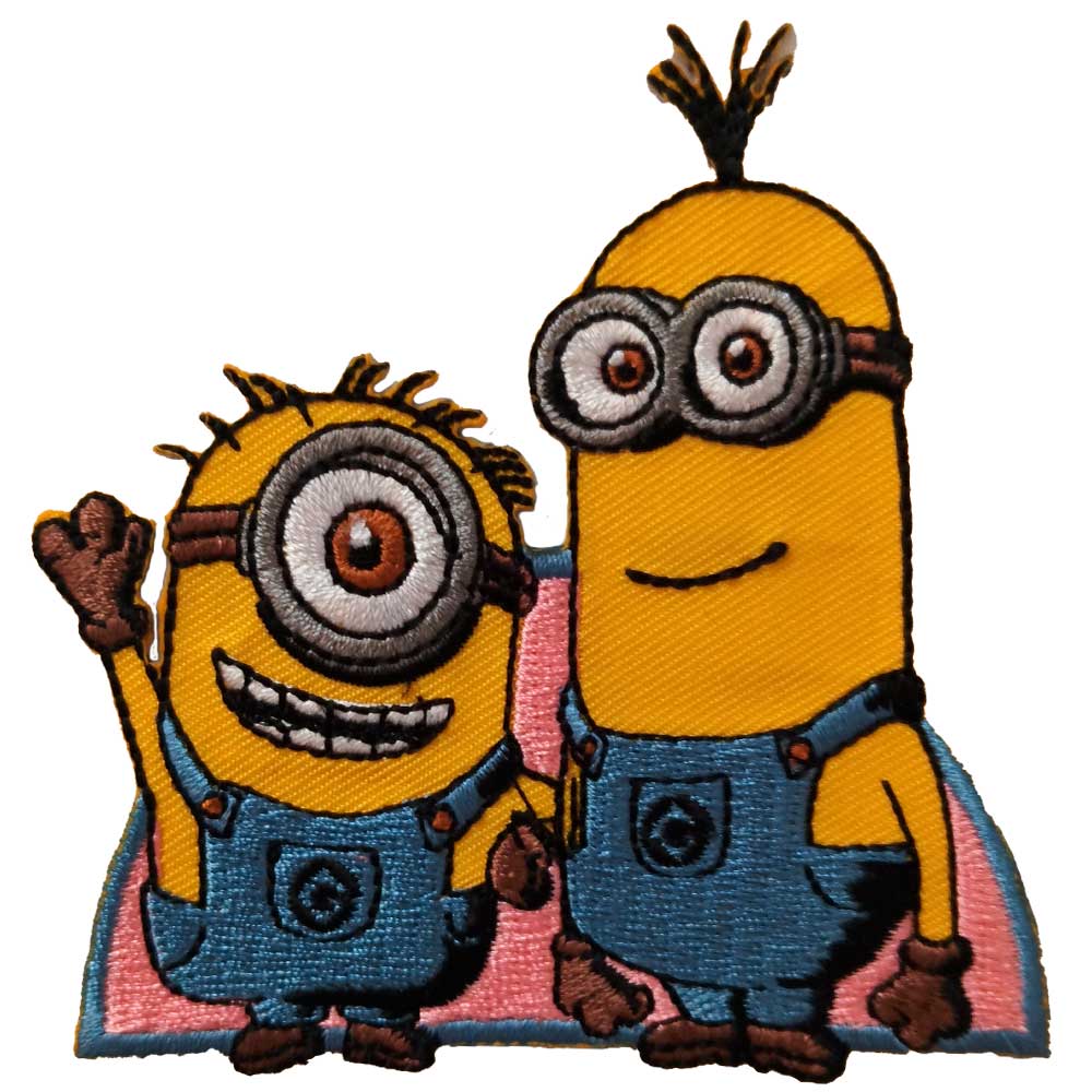 Parches Ropa Minions – Parche Bordado Ropa – (licencia oficial) – Minions – Stuart & Kevin – Saludo – Humor – Graciosos – Simpáticos – Amistad – Amig@s – 8,1 x 8,2 cm. – Moda The Happy Patch