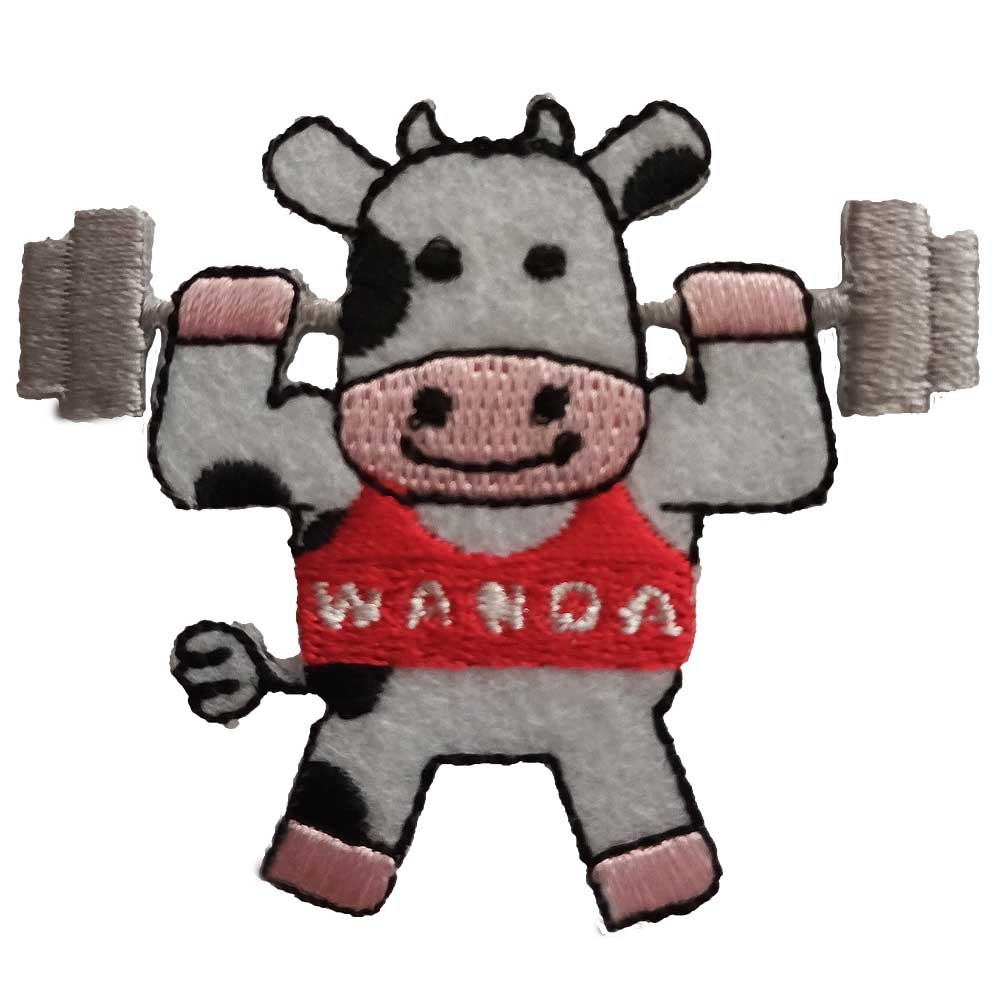 Parches Ropa – Parche Bordado Ropa – Exclusivo – Animales – Vaca – Deportes – Halterofilia – Forzuda – Pesas – 6,1 x 5,2 cm. – Moda The Happy Patch