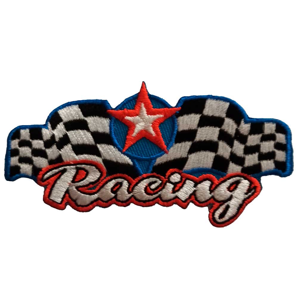 Parches Ropa – Parche Bordado Ropa – Exclusivo – Carreras – Motor – Racers – Coche Deportivo – Racing – Emblema Bandera Cuadros – 8,1 x 4,2 cm. – Moda The Happy Patch