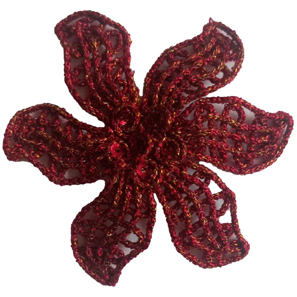 Parches Ropa – Parche Ropa Fiesta & Sofisticado, Lentejuelas, Cuentas Decorativas e Hilo Bordado Brillante – Artesanía Exclusiva de Lujo – Flores – Flor – Rojo & Dorado – Plantas – Hippie – 6,5 x 6,5 cm. – Moda The Happy Patch