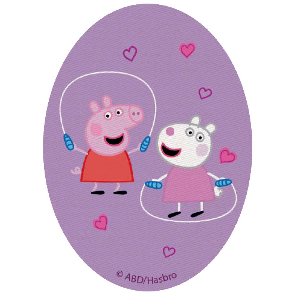 Parches Ropa Peppa Pig – Parche Impreso Ropa – Animales – (licencia oficial) – Peppa Pig – Peppa & Suzy Oveja jugando saltar comba – Amig@s – Amistad – 11,0 x 8,0 cm. – Moda The Happy Patch