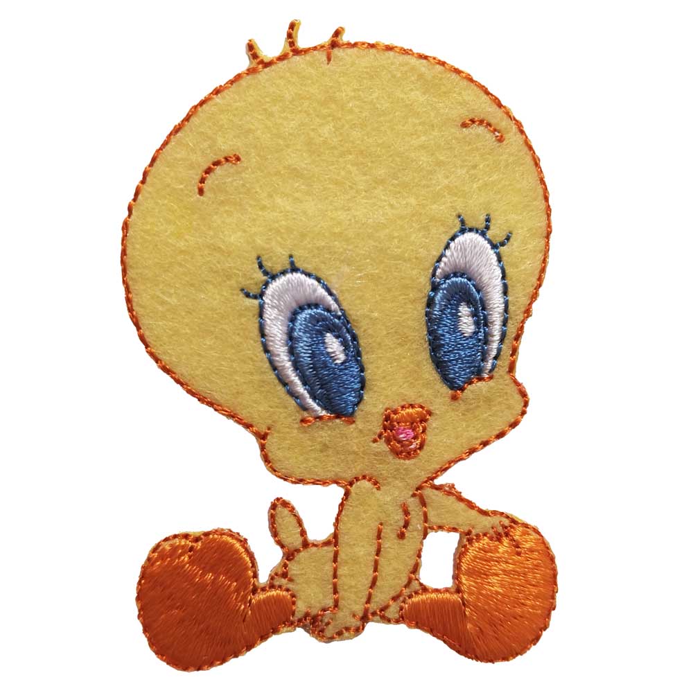 Parches Ropa Warner Bros – Parche Bordado Ropa – Animales – (licencia oficial) – Bebé – Baby Looney Tunes – Tweety – Canario Piolín & Sentado – Tiernos – 4,6 x 7,0 cm. – Moda The Happy Patch